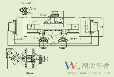 HT24F04驅動橋總成結構為鑄造整體式橋殼,主減速器總成、“S”凸輪、帶滾輪制動器總成、制動鼓及輪轂總成、全浮式半軸等件組成。它具有噪音低、運行平穩、安全系數高、制動性能好等優點。主要有以下特點: