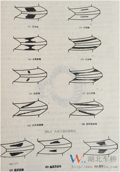 一對主從動錐齒輪在正常嚙合運轉條件下,齒面上實際接觸的位置我們把它叫“接觸區”,也叫“接觸斑點”。齒面接觸區的形狀、大小、位置對齒輪的平穩運轉、使用壽命和噪聲有直接影響。所以接觸區是衡量錐齒輪嚙合質量的重要標志之一。下面為大家介紹幾種接觸區樣式。