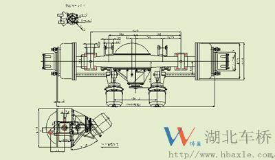 401K75-010-5.286主減速器總成是我廠根據(jù)客車廠家的要求,設(shè)計突緣端面至橋殼中心線距離為280mm(見如下安裝尺寸圖)。主從動錐齒輪是專門針對客車要求噪音低、壽命長等特點而開發(fā)的,其傳遞扭矩16500N.M,裝配成總成后噪音在84dB以下,壽命可達70萬次以上,深受用戶的好評。