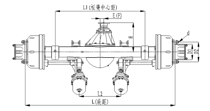 1.橋殼采取加強型設(shè)計,承載能力強;2.車輪輪輞定位方式可采用球面定位或止口定位;3.板簧距與輪距可以靈活調(diào)整