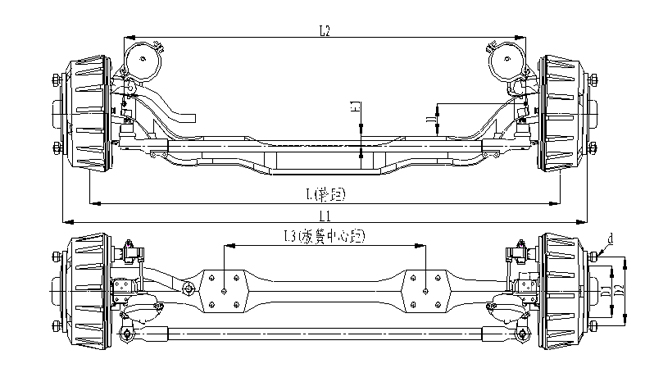 1.前軸為整體鍛造結構,承載能力強;2.采用專用客車制動鼓(帶散熱孔及散熱筋)和摩擦片,具有散熱效果好,使用壽命長的優點;3.車輪輪輞定位方式可采用球面定位或止口定位;4.輪距、板簧距可靈活調整;