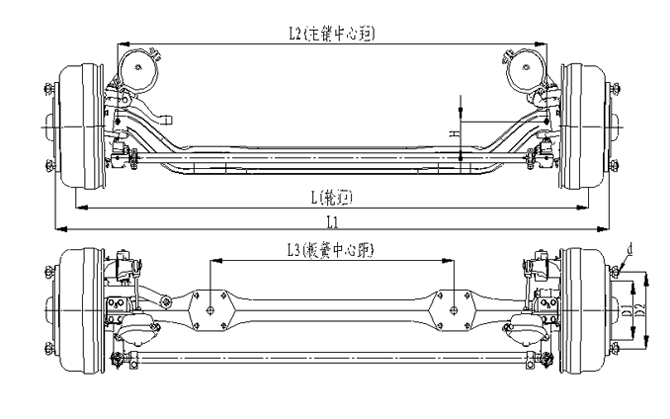 1.前軸為整體鍛造結構,承載能力強;2.采用專用客車制動鼓(帶散熱孔及散熱筋)和摩擦片,具有散熱效果好,使用壽命長的優點;3.車輪輪輞定位方式可采用球面定位或止口定位;4.輪距、板簧距可靈活調整;
